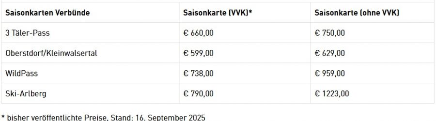Vorarlberger Seilbahnen: Ticketpreise Wintersaison 2025/26Die Skipass-Preise für die kommende Saison stehen nun fast überall fest: Tages- und Saisontickets in Vorarlberg werden in der Wintersaison 2025/26 im Schnitt rund vier Prozent teurer. Neben klassischen Fixpreisen setzen einige Skigebiete weiterhin auf ein dynamisches Preismodell. Mit den Ticketerlösen wird nicht nur der laufende Betrieb finanziert, sondern es werden auch Investitionen ermöglicht, die für Qualität und Zukunftssicherheit sorgen. Am 1. Oktober 2025 starten die Vorarlberger Skigebiete mit dem Vorverkauf der Saisonkarten. „Wir freuen uns schon auf den Winter und sind mitten in den Vorbereitungen“, sagt Andreas Gapp, Fachgruppenobmann der Vorarlberger Seilbahnen. Parallel dazu stehen nun auch bei den meisten Skigebieten die Ticketpreise für die kommende Saison fest. Erste Auswertungen zeigen eine durchschnittliche Steigerung von rund vier Prozent bei Tages- und Saisonkarten im Vorjahresvergleich. „Aktuell spüren wir steigende Kosten über alle Kostengruppen hinweg. Das zeigt sich auch an der Inflation, die im Jahresschnitt bei rund drei Prozent lag, jetzt aber im August deutlich angezogen hat. Diese Unberechenbarkeit wirkt sich auch auf die Preisgestaltung der Ticketpreise aus“, erklärt Gapp. Gleichzeitig betont er: „Unsere Seilbahnen zählen zu den Weltmarktführern in Sachen Qualität und Sicherheit. Im Preisvergleich mit anderen Gebieten im Alpenraum liegen wir jedoch im Mittelfeld.“ Angebots- und Preisvielfalt In Vorarlberg haben Wintersportlerinnen und Wintersportler auf relativ kleiner Fläche die Wahl zwischen 32 verschiedenen Skigebieten. Das differenzierte Angebot umfasst dabei sowohl kleinere Skigebiete, die sich vor allem für Kinder oder Einsteiger:innen eignen, als auch größere Skigebiete für geübtere Wintersportler:innen. „Mit dieser Angebotsvielfalt geht auch eine Preisvielfalt einher. So gibt es auch heuer wieder Tickets bereits ab 24 Euro“, erklärt Gapp. Seit der Saison 2022/23 setzen einige Skigebiete zudem auf Dynamic Pricing. Dabei passt sich der Ticketpreis an Faktoren wie Buchungszeitpunkt oder Auslastung an. „Für die Gäste bedeutet das, dass Skifahren an bestimmten Tagen, etwa bei geringerer Nachfrage oder unter der Woche, günstiger sein kann“, führt Gapp weiter aus. 122 Millionen Investitionen Die Zukunftssicherheit der Skigebiete hat für die Vorarlberger Seilbahnen oberste Priorität. Um den Gästen beste Bedingungen zu bieten und im internationalen Wettbewerb bestehen zu können, investieren die Bergbahnen laufend. Insgesamt rund 122 Millionen Euro flossen heuer in die heimischen Skigebiete, knapp die Hälfte davon, rund 58 Millionen Euro, in Schneesicherheit und Pistenoptimierungen. „Die Ticketpreise sichern nicht nur den laufenden Betrieb. Sie ermöglichen es uns auch, kontinuierlich in Qualität und Schneesicherheit zu investieren – und damit die Zukunft der Vorarlberger Skigebiete langfristig abzusichern“, erklärt Gapp abschließend. |