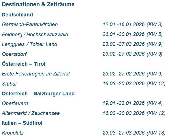 Schulklassenprojekt DeineWinterWoche: Nach erfolgreicher Premiere Fortsetzung im Winter 2025/26Wintersportwochen mit der ganzen Klasse zählen zweifellos zu den Highlights jeder Schulzeit. Daher ist es wichtig, dieses Erlebnis möglichst vielen Kindern und Jugendlichen zu ermöglichen. Genau aus diesem Grund hat die Wintersportinitiative Dein Winter. Dein Sport. – getragen vom Deutschen Skiverband, Deutschen Skilehrerverband, Snowboard Germany und der Stiftung Sicherheit im Skisport – das Schulklassenprojekt DeineWinterWoche ins Leben gerufen. Nach erfolgreicher Premiere mit über 1.000 Bewerbungen im Winter 2024/25 wird das Projekt auch in dieser Saison fortgeführt. Bereits in der vergangenen Saison hat das Schulklassenprojekt eindrücklich gezeigt, wie zentral gemeinsame Wintersportwochen für das schulische Leben sind und wie wichtig es ist, diese prägenden Erfahrungen möglichst vielen Kindern und Jugendlichen zu ermöglichen. Zudem verdeutlichte das Projekt die grundlegende Bedeutung von Bewegung, Gemeinschaft und Naturerfahrung im Bildungskontext. Auch in der kommenden Saison ist das Ziel Schülerinnen und Schülern der Jahrgangsstufen 7 bis 10 aus allen deutschen Bundesländern eine unvergessliche Woche im Schnee zu ermöglichen. Insgesamt neun Schulklassen – das Projekt gilt schulartübergreifend – haben wieder die Chance, eine fünftägige Klassenfahrt in eine Wintersportregion in Deutschland, Österreich oder Norditalien zu gewinnen. Wo es hingeht, entscheiden die Klassen selbst. Die Destinationen sind dabei so vielfältig wie ihre Skigebiete: In Bayern reisen die Schüler*innen mit der Bahn nach Garmisch-Partenkirchen, Lenggries im Tölzer Land und Oberstdorf und in Baden-Württemberg nach Feldberg im Hochschwarzwald. In Österreich geht es nach Tirol in die Erste Ferienregion im Zillertal und ins Stubaital. Und ins Salzburger Land fahren die Schulklassen nach Altenmarkt/Zauchensee und nach Obertauern. Auch Südtirol ist mit dem Kronplatz vertreten. Die Anreise in den Schnee erfolgt mit dem Dein Winter. Dein Sport. Premium-Partner Deutsche Bahn, womit sichergestellt wird, dass auch im Rahmen der Schulklassenfahrten eine einfache, günstige und klimafreundliche Anreise mit sehr geringem CO2-Fußabdruck erfolgt. Alle Schüler*innen werden bei Bedarf zudem mit hochwertiger Leihausrüstung ausgestattet, die INTERSPORT gemeinsam mit ausgewählten Sportartikelherstellern bereitstellt. Die Kosten für Anreise, Mobilität vor Ort, Liftpässe, Ski-/Snowboardunterreicht sowie die Übernachtung mit Vollpension werden vollständig von den beteiligten Partnern übernommen. Organisiert werden die Klassenfahrten von alpetour und Klühspies Reisen – die Spezialisten für Schulskifahrten. Noch bis Freitag, 31. Oktober, können sich Lehrkräfte auf www.deinewinterwoche.de bewerben und mit etwas Glück ihrer Klasse eine der schönsten Wochen der gesamten Schulzeit bescheren. Der Bewerbungsprozess ist denkbar einfach und benötigt nur wenige Klicks: registrieren, Wunschdestination angeben und Bewerbung abschicken. Im Anschluss werden die Gewinnerklassen innerhalb von zehn Werktagen per Losverfahren bestimmt und umgehend informiert. |