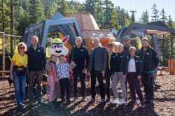 Planai / Schladming: 10 Jahre Hopsiland – Jetzt geht’s auf WeltreiseZum Jubiläum verdoppelt ein neuer Rundweg das Angebot im Hopsiland Schladming. Ein doppelter Grund zur Freude auf der Planai: Am Donnerstag, dem 11. September, wurde im Rahmen eines Festaktes das 10-jährige Jubiläum des beliebten Hopsilands gefeiert. Gleichzeitig wurde der neue Rundweg „Hopsis Reise um die Welt“ offiziell eröffnet. Neben Bürgermeister Hermann Trinker waren auch die umliegenden Hüttenwirte, Grundbesitzer, Wegbegleiter und Projektbeteiligte vor Ort. Auch die Kinder der Volksschulen Schladming, Untertal und Pichl hatten auf Einladung der Planai die Gelegenheit, den neuen Rundweg auszuprobieren und die Spielstationen kennenzulernen. Nach der musikalischen Einstimmung durch die Musikschule Schladming begrüßte Planai-Geschäftsführer Dir. Georg Bliem die Gäste und blickte auf eine wahre Erfolgsgeschichte zurück: „Seit 2015 begeistert das Hopsiland Kinder und Familien. Dass wir heute nicht nur das 10-jährige Jubiläum feiern, sondern auch einen neuen Themenrundweg eröffnen, macht diesen Tag besonders. Mein großer Dank gilt den Grundbesitzern, allen Projektbeteiligten und unserem Team Hopsiland mit Bettina Vettori und Gerhard Baier an der Spitze“. Mit dem neuen Weg verdoppelt sich das Hopsiland von einem 2-Kilometer-Rundweg auf insgesamt vier Kilometer. Unter dem Motto „Hopsis Reise um die Welt“ führen die Stationen unter anderem nach Australien, auf eine Safari oder auf eine spannende Reise durch Europa. Auch Bürgermeister Hermann Trinker gratulierte: „Das Hopsiland ist seit Jahren ein Aushängeschild für Familien auf der Planai. Mit dem neuen Rundweg wird dieses Erfolgsprojekt weiter ausgebaut und die Familienkompetenz der Planai eindrucksvoll unterstrichen – ein Gewinn für Gäste wie auch für Einheimische“. Zum Abschluss sorgten die Kinder der drei Volksschulen für eine musikalische Überraschung, bevor die Gäste den neuen Rundweg erkundeten und die Feierlichk |