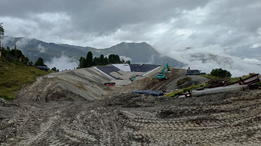 TRM liefert hierfür sämtliche Teichleitungen inklusive Ablassleitung zur Notentleerung. Zudem werden Feldleitungen sowie Verbindungsleitungen zu anderen Pumpstationen verlegt. Ein zentrales Element ist die neue Pumpstation mit über 1.000 l/s Leistung – eine der größten der Region. Der Lieferumfang von TRM enthält ca. 9,4 km Rohrleitungen. Dies sind rund 625 Tonnen Rohre und Formstücke. Ein Teil der Bauarbeiten wird voraussichtlich 2026 abgeschlossen. Bilder: © Skiliftzentrum Gerlos |
