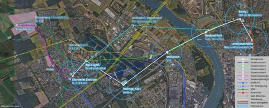 Aktuelle Untersuchungen zu Seilbahnen in KölnBasierend auf bereits existierenden und öffentlich diskutierten Vorschlägen wie dem „Rheinpendel“, aber auch neue und zusätzliche Trassenvarianten (Ubierring --> Deutzer Hafen und Chorweiler --> Leverkusen) analysierend, kommen die Studierenden in ihren Abschlussarbeiten zu spannenden und beachtlichen Ergebnissen, die Sie unten anbei in Einzelzusammenfassungen finden. Als Fazit lässt sich bereits sagen: das verkehrliche und städtebauliche Potenzial urbaner Seilbahnen ist groß - auch für Köln. Ein Seilbahnnetz für die Kölner Innenstadt Im Rahmen seiner Abschlussarbeit und eines Praxisprojekts hat Eric Schweden sich mit der technischen Machbarkeit innovativer Seilbahnverbindungen für die Kölner Innenstadt beschäftigt. Dabei hat er ein Seilbahnnetz entlang des Rheins konzipiert, die Fahrzeiten und Kosten abgeschätzt und die Auswirkungen auf den Stadtverkehr simuliert. Seine Ergebnisse zeigen, dass die Seilbahn in dem untersuchten Bereich ein lohnendes Verkehrsmittel ist, das voraussichtlich von vielen Menschen genutzt würde. Das entwickelte Seilbahnnetz besteht aus einer Nord-Süd-Achse, die von der Zoobrücke über Deutz bis zum Ubierring verläuft, sowie aus einer Ost-West-Achse zwischen dem Kölner Hauptbahnhof und dem Messegelände. Zusätzlich befindet sich eine Stichroute zwischen der Bastei und dem Ebertplatz. Das Seilbahnsystem umfasst eine Streckenlänge von ca. 7.300 m mit 16 Stationen entlang des Rheins. Die gewählte Streckenführung verläuft überwiegend entlang bestehender Verkehrswege, öffentlicher Flächen oder Grünanlagen. Ein innovativer Ansatz besteht darin, die Seilbahn zwischen den Stationen Deutzer Freiheit und Severinsbrücke auf einer schienengebundenen Spur zu führen, sodass sie dem kurvigen Straßenverlauf folgen kann. Die durchgeführten Fahrzeitberechnungen zeigen, dass die geplanten Seilbahnlinien Reisezeitverkürzungen von bis zu 25 Minuten gegenüber den aktuellen ÖPNV-Verbindungen ermöglichen. Die Kabinen verkehren im 30-Sekunden-Takt. Die Fahrzeuganzahl und Fahrzeugfolgezeit können flexibel angepasst werden. Dadurch ist eine maximale Förderleistung von bis zu 5.000 Personen pro Stunde und Richtung möglich. Durch den Einsatz einer On-Demand-Technik lassen sich die Fahrzeiten zusätzlich verkürzen, da Stationen schneller durchfahren oder bei geringerer Nachfrage ausgelassen werden können. Die Kosten für die geplante Seilbahn werden auf rund 200 Mio. Euro geschätzt und lägen damit in einem vergleichbaren Rahmen wie die beiden geplanten Fuß- und Radwegbrücken am Ubierring und an der Bastei, deren Gesamtkosten etwa 160 Millionen betragen. Im Vergleich zu anderen Verkehrsmitteln des ÖPNVs zeichnet sich die Seilbahn durch einen geringen Energieverbrauch aus, was zu niedrigen CO2-Emissionen führt. Ein weiterer Vorteil besteht im geringen Personalbedarf, da die Kabinen automatisch verkehren. Insgesamt ergibt sich aus der Bachelorarbeit eine positive Bewertung: Die Seilbahn stellt eine technisch machbare, wirtschaftlich vertretbare und verkehrlich sinnvolle Ergänzung des öffentlichen Nahverkehrs in der Stadt Köln dar. Stationsarchitektur für die Innenstadt Die Architekturstudentin Lucy Giebat hat in ihrer Masterarbeit zwei urbane Seilbahnstationen für die Stadt Köln entworfen. Die Stationen, die als Baukastensystem konzipiert sind, vervollständigen ein visionäres, großflächiges Seilbahnsystem, welches den ÖPNV durch eine dritte Ebene erweitert. An dieser Stelle kam es zu einer engen interdisziplinären Zusammenarbeit an der TH Köln. Während Lucy Giebat den architektonischen Part übernahm, erarbeiteten Eric Schweden und Moritz Kampschulte, Studenten der Fakultät Bauingenieurwesen mit Schwerpunkt Verkehrswesen, eine realistische Streckenführung. Betreut wurde die Gruppe durch Prof. Dr. Volker Stölting (Bauingenieur, Lehrgebiete Schienenverkehr und öffentliche Verkehrssysteme) und Prof. Jochen Siegemund (Architekt, Lehrgebiet Entwerfen, Objekt-und Raumgestaltung) und der Architektin Mirjam Matthiessen (Studio Schlotthauer Matthiessen) aus Hamburg. Zusätzliche Unterstützung gab es durch den Think-Tank Urban Netways, die sich schon seit längerem mit einer On-Demand Technik beschäftigen. Durch die On-Demand Nutzung können Ziele ohne Um-stiege erreicht werden. So kann eine neue Art der Mobilität im ÖPNV entstehen. Die Stationen können flexibel in Größe und Form an die unterschiedlichen Standorte angepasst werden. Beispielhaft wurden zwei Stationen architektonisch umgesetzt: der Ubierring als Minimalstation und der Deutzer Hafen als erweiterte Station. Die Seilbahn mit Stationen am Ubierring und am Deutzer Hafen wird zur wichtigsten Verbindung zwischen der Deutzer Seite und dem südlichen Altstadtviertel. Untersuchung der Verbindung von Köln Chorweiler und Leverkusen Moritz Kampschulte hat für seine Abschlussarbeit verschiedene Varianten für eine Seilbahn von Köln Chorweiler über Merkenich bis nach Leverkusen untersucht. Als Chance sieht er hier, die Vielzahl an Industrien und Arbeitsplätze des täglichen Lebens auf beiden Seiten des Rheins besser zu verbinden. Auch öffentlichen Einrichtungen sowie Naherholung und Tourismus wie die Wege zum Leverkusener Rheinpark oder zum Fühlinger See könnten deutlich profitieren. Das bestehende Netz aus Bussen und Bahnen könne hier ergänzt werden und dazu die Seilbahn eine komfortable Lösung sein. Im Ergebnis kommt er auf eine Strecke von ca. 7,8 km, die sich laut seinen Simulationen zu lohnen scheint. Die aktuell schnellste ÖPNV-Verbindung zwischen den beiden Start- und Endstationen führt aktuell noch über den Kölner Hauptbahnhof mit einer Fahrzeit von 34 Minuten. Dem stehen 24 Minuten mit der Seil-bahn gegenüber, die alle 30 Sekunden fahren soll. Die Reisezeiten verkürzen sich noch deutlicher von den Zwischenstationen, wie zum Beispiel in 11 statt 52 Minuten von Merkenich nach Leverkusen Mitte. Für den Linienve