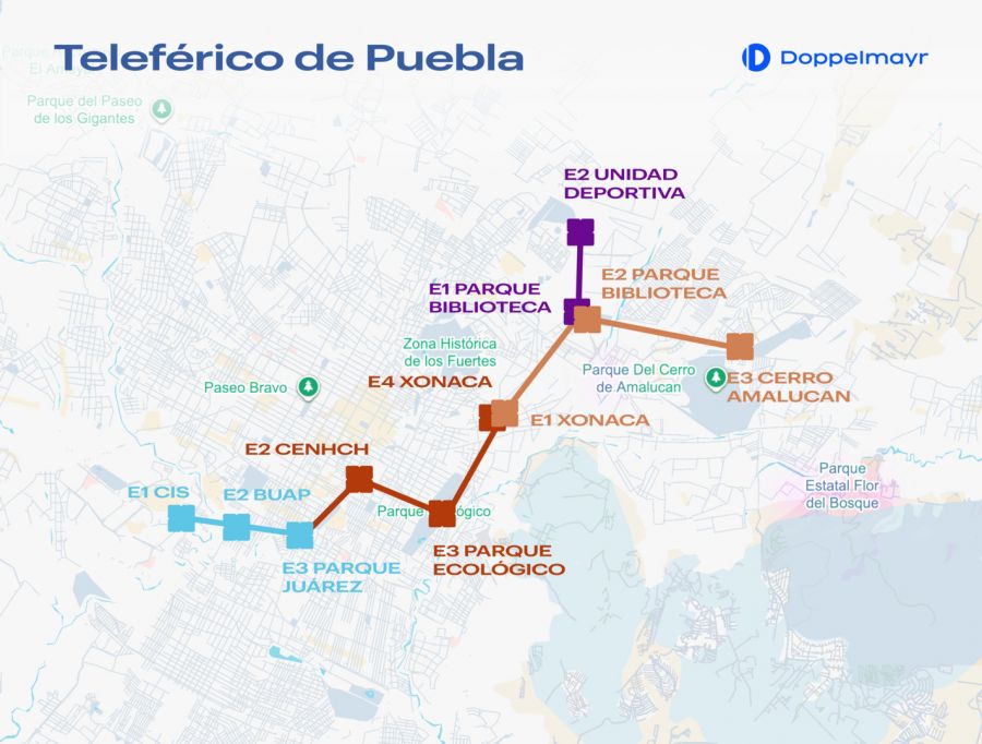 Neben Seilbahnen für den öffentlichen urbanen Verkehr hat die Doppelmayr Gruppe auch weitere Projekte realisiert, darunter den Cable Liner® Aerotrén am internationalen Flughafen von Mexico City (AICM), ein RopeCon®-System für den nachhaltigen Materialtransport in der Bergbauindustrie sowie die Vidanta Gondelbahn – die erste touristische Seilbahn in einem Strandresort in Lateinamerika. Mit der Umsetzung des Seilbahnsystems in Puebla baut das Unternehmen seine Präsenz in Mexiko weiter aus und bestätigt seine Rolle als strategischer Partner in der Entwicklung moderner und nachhaltiger Infrastruktur. |
