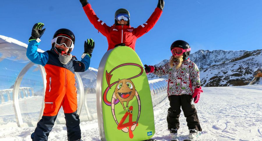 Stubaier Gletscher erneuerte drittes Sunkid-FörderbandDie Positionierung als „Königreich des Schnees“ sichern die Seehöhe sowie die klimatischen Bedingungen. Für den zweiten Schwerpunkt als „kunterbuntes, familienfreundliches und sportliches Familienskigebiet“ legt sich die Destination fortlaufend ins Zeug. Zum Beispiel mit einem Gratis-Skipass für Kinder bis 10 Jahre, immer wieder neuen Schneesport-Attraktionen wie Funpark, Bordercross oder Sunline und der laufenden Investition in eine komfortable Liftinfrastruktur für den Ski-Nachwuchs. Wer „am Stubaier Gletscher begleitet Skifahren oder Snowboarden lernen will, besucht das BIG Family Kinder- und Jugend Ski-Camp“ an der Bergstation Gamsgarten. Dieses Kinderland hat vier Zauberteppiche zu bieten – wobei in den letzten sechs Jahren drei altgediente Sunkid-Anlagen durch neue Förderbänder des österreichischen Herstellers ersetzt wurden. Der jüngste Neuzugang ist ein 42 Meter langer Zauberteppich der neuesten Sunkid-Generation Type N mit i-CONTROL-Steuerung. Diese bietet dem Team vom Stubaier Gletscher neben intuitiver Bedienung via Multi-Touch-HMI (Display) unter anderem eine Fernwartungsanbindung via (W)Lan. Mit einer Antriebsleistung von 15 kW und einer hydraulischen Spannstation inklusive Schwungrad (zum Ausgleichen der Fördergurtdehnung) überwindet das Förderband auch bei maximaler Auslastung spielend leicht die durchschnittliche Steigung von 12 Prozent (max. 19,1 %). Die Fördergurtgleitschicht „V-Slide“ minimiert die Reibungskräfte und den Komponentenverschleiß. Für das Team der Schischule Neustift Stubaier Gletscher am Gamsgarten steht die „Freude am Sport, an der Bewegung und an der Natur steht ganz weit im Vordergrund“. Aus diesem Grund zeigen sich die Skilehrer vor allem begeistert von den Vorzügen der Evo-N-Galerie, die den windzugewandten Einstiegsbereich mitüberdacht. So tanken Schüler wie Lehrer windgeschützt Kraft und Sonnenwärme – und der Schneewind kann getrost draußen wüten. Der Slide-up-Notausgang lässt sich im Gefahrenfall leicht öffnen und verschließt und schützt die Galerie ebenso wie die selbstaufrollenden Eingangs- und Ausgangsplanen sicher vor eindringendem Schnee bei Nacht oder Betriebspause. Ebenfalls zu dieser Wintersaison belieferte Sunkid den Kunden mit individuell gestalteten Elementen aus dem Portfolio „Sunny Stuff“. Ein „Toucan M“-Aufsteller weist den Weg zum „BIG Family […] Ski-Camp“ und eine Säule wirbt für die Schischule Neustift. Zum Start ihrer Abfahrt neben dem neuen Zauberteppich können die Kinder einen „Eingangsbogen S“ mit den Maskottchen Zottel, Bommel und Wollie durchfahren. Diese „quirlige Wuschelkugel“ Bommel ziert ebenfalls vier neue Schaumstofffiguren inklusive rutschfester Gummimatte und den Ziffern von eins bis vier. Diese werden zur morgendlichen Gruppeneinteilung verwendet. Für Abwechslung und eine entspannte Pausenunterhaltung sorgt zudem seit vielen Jahren das Original-Skikarussell Rotondo aus dem Hause Sunkid. Sunkid-CEO Emanuel Wohlfarter: „Es bereitet uns große Freude, die fortlaufende Modernisierung und nachhaltige Weiterentwicklung der Familien-Skidestination Stubaier Gletscher als langjähriger Partner seit mehr als 25 Jahren zu begleiten.“ Zauberteppich 2024 Zauberteppich 2019 Anwendung: Zauberteppich 2018 |