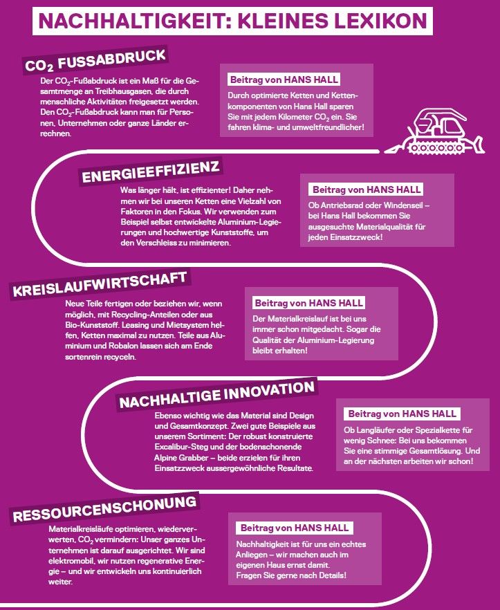 Die Hans Hall GmbH verbindet Innovation mit VerantwortungNachhaltigkeit ist längst kein Trend mehr – sie ist zur Voraussetzung für zukunftsfähiges Handeln geworden. Für viele Seilbahnbetreiber und Skigebiete ist sie heute entscheidend für Investitionen und Partnerschaften. Doch echte Verantwortung zeigt sich nicht nur bei Energiefragen oder Schneemanagement – oft steckt die größte Wirkung im Detail. Seit Jahrzehnten steht die Hans Hall GmbH mit Sitz im deutschen Weingarten für Premiumketten und hochwertige Kettenkomponenten für anspruchsvolle Einsätze, vom alpinen Gelände bis zum Moorboden. Als Familienbetrieb in dritter Generation verfolgt das Unternehmen eine klare Philosophie: „Es uns ein persönliches Anliegen, verantwortungsbewusst zu handeln und Produkte zu entwickeln, die eine lange Haltbarkeit haben“, sagt Geschäftsführer Hans Hall. Die freiwillige Teilnahme am KLIMAfit-Projekt der baden-württembergischen Landesregierung unterstreicht: Nachhaltigkeit ist hier kein Pflichtprogramm, sondern gelebte Überzeugung. Ein Beispiel: Aluminium. Während die herkömmliche Produktion rund 15 kg CO₂e pro Kilogramm verursacht, liegt der Wert bei recyceltem oder sogenanntem Low Carbon Aluminium bei nur etwa 4 kg CO₂e – eine Reduktion von über 70 Prozent. Deshalb setzt Hans Hall konsequent auf europäische Lieferketten und Partner, die emissionsarmes Aluminium herstellen und zurückführen. So bleiben rund 75 Prozent des Metalls im Kreislauf. Auch bei Kunststoffen wird nachhaltig gedacht: Gemeinsam mit dem Spezialisten Röchling nutzt Hans Hall biobasierte Materialien wie Röchling-BioBoom®. Hier kommen Bio-Kunststoffe zum Einsatz, die je nach Werkstoff biologisch abbaubar sind und zu einem Teil aus natürlichen Inhaltsstoffen, wie etwa Zuckerrohr und Zuckerrüben bestehen. Hans Hall denkt Nachhaltigkeit auch dort, wo es besonders wichtig ist: Mit speziell entwickelten Gummiketten ermöglicht das Unternehmen eine bodenschonende Nutzung empfindlicher Ökosysteme wie Moore – wertvolle CO₂-Speicher, die gleichzeitig landwirtschaftlich nutzbar bleiben. Damit unterstützt Hans Hall Projekte, bei denen Schilf oder Rohrkolben für Baustoffe, Verpackungen oder Biogas gewonnen werden – ein Beispiel für technische Innovation mit ökologischem Mehrwert. Alle Produkte werden mit 100 % erneuerbarer Energie gefertigt. Gummibänder bestehen aus Naturkautschuk und werden lösungsmittelfrei hergestellt, für maximale Performance bei verringertem ökologischen Fußabdruck. Der nächste Schritt in der Nachhaltigkeitsstrategie: Hans Hall arbeitet an einem Transformationskonzept und wird zukünftig auf Basis des GHG (Greenhouse Gas Protocol) nach dem VSME-Standard (Voluntary SME) – einem speziell für kleine und mittlere Unternehmen entwickelten Berichtsstandard, berichten. „Wir dokumentieren unsere Daten aufwändig, weil wir überzeugt sind, dass Transparenz der nächste logische Schritt ist“, erklärt Hans Hall. Hans Hall steht für mehr als Technik – das Unternehmen steht für eine Industrie mit Haltung. Von der Materialwahl bis zur Fertigung wird jedes Detail durchdacht. So entstehen Lösungen, die nicht nur zuverlässig und leistungsstark sind – sondern richtungsweisend für eine nachhaltige Zukunft. Hans Hall GmbH – Innovation mit Verantwortung. Mehr erfahren unter: http://www.hans-hall.com/nachhaltigkeit |