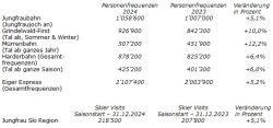 Mehr als 1 Million Gäste besuchen das Jungfraujoch – Top of EuropeDie Jungfraubahn Holding AG teilt in einer Ad hoc-Mitteilung gemäss Art. 53 Kotierungsreglement mit, dass im Jahr 2024 mit 1'058’600 Gästen auf dem Jungfraujoch – Top of Europe zum sechsten Mal seit dem Jahr 2015 die Millionenmarke übertroffen werden konnte. Bei den Erlebnisbergen verzeichneten die First- und die Harderbahn wie auch die Bergbahn Lauterbrunnen-Mürren neue Rekordzahlen. Der Start in die Wintersaison 2024/2025 war der Beste in der Geschichte. Im Jahr 2024 besuchten 1'058'600 Gäste das Jungfraujoch – Top of Europe. Die Frequenzsteigerung von 5,1 Prozent gegenüber dem Vorjahr ist auf die Gruppenreisen zurückzuführen, die sich wieder auf dem Niveau von vor der Corona-Pandemie befinden. Gleichzeitig ist eine weitere Zunahme der Gäste aus den USA, Indien und Südostasien festzustellen. Die Besucherinnen und Besucher aus China und Japan liegen noch immer rund 50 Prozent hinter dem Vorkrisenniveau zurück. Erlebnisberge mit Rekordfrequenzen Erneut gab es bei den Erlebnisbergen Rekordergebnisse bei den Gästezahlen. Die Harderbahn konnte mit 878’200 Berg- und Talfahrten ihren Höchstwert aus dem Jahr 2023 um 6,4 Prozent übertreffen. Dies gilt auch für die Firstbahn, die mit 926’900 Besuchenden insgesamt ein Plus von 10,0 Prozent gegenüber dem Vorjahr verzeichnete. Die Bergbahn Lauterbrunnen-Mürren (BLM) zählte 507'200 Gäste und damit ein Plus von 12,2 Prozent gegenüber dem Jahr 2023. Mit dem Eiger Express fuhren auf der Strecke zwischen Grindelwald Terminal und dem Eigergletscher im Jahr 2024 mit 2'107’400 Reisenden nach 2023 zum zweiten Mal über 2 Millionen Gäste. Start in die Wintersaison Die Wintersportsaison 2024/2025 startete am 30. November 2024 mit Wochenendbetrieb und seit dem 14. Dezember herrscht durchgehender Wintersportbetrieb. Beim Vorverkauf des Top4-Skipasses (Partnerangebot von Adelboden-Lenk, Gstaad, Jungfrau Ski Region und Meiringen-Hasliberg) wurden rund 33’000 Top4-Skipässe zum Vorverkaufspreis abgesetzt, womit die Zahl höher lag als jene für die Wintersaison 2023/2024 mit über 32'000 Top4-Skipässen.