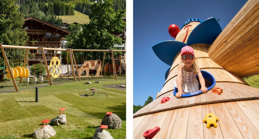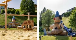 Sunkid: Völlig neu gestaltet - „Montelinos Erlebnis-Alm“ in Hinterglemm feierlich eröffnetBereits 2023 erweiterte die Ganzjahresdestination Saalbach-Hinterglemm (Österreich) ihr Sommerangebot mit einem großen individuell gestalteten Erlebnisweg und Wasserspielplatz sowie einer fulminanten Abenteuer- und Spielewelt aus der Sunkid-Produktwelt Wood’n’Fun. Am 28. Juni 2025 wurde nun die neueste Sommerattraktion für Groß und Klein im Herzen von Hinterglemm feierlich eröffnet. Hier entstand wiederum in Zusammenarbeit mit Sunkids Partner Almholz der völlig neu gestaltete Abenteuerbereich „Montelinos Erlebnis-Alm“. Eine ebenso liebevolle wie aufwendige Fortsetzung der erlebbaren Geschichte rund um das Maskottchen der Destination – dem Clown Montelino. Hier gibt es nun einen thematisierten Wasser- sowie Sandspielplatz, eine gigantische Almhütte mit Rutschen, eine Aussichtsplattform, Seilbahn und Baumkarussell, Kletterzonen und Motorikstrecken, Kugelbahnen und sogar eine Eltern-Kind-Schaukel. Dabei wurden nahezu alle Spielstationselemente und -geräte aus dem nachhaltigen, regionalen und unbehandelten Werkstoff Lärchenholz gefertigt. Die Thematisierung orientiert sich durchgängig an klassischen Motiven und Gegenständen der Almwirtschaft – wie Hütte, Heurechen oder Hornschlitten – und des Käsehandwerks – von der Kuh, über Milchkannen, bis hin zum Käselaib. Für die nötige Entspannung bei Spielpausen der Kinder sowie für deren erwachsene Begleitpersonen sorgt eine Vielzahl and Liege- und Sitzgelegenheiten. Das Highlight des Areals bildet ein riesiger bespielbarer Montelino, der Kinderaugen zum Leuchten bringt, und über mehrere Zugänge (Kletterwand, Leiter, Röhren) und Ebenen erklettert und erlebt werden kann. Dieses besondere Spielgerät durfte Sunkid bereits auf der Interalpin 2025 dem internationalen Publikum präsentieren. Wir wünschen unserem Kunden viel Erfolg mit „Montelinos Erlebnis-Alm“ und drücken die Daumen für die Fortsetzung des bis dato „besten Saisonstarts (mehr als 160.000 Nächtigungen im Mai/Juni) aller Zeiten“. |