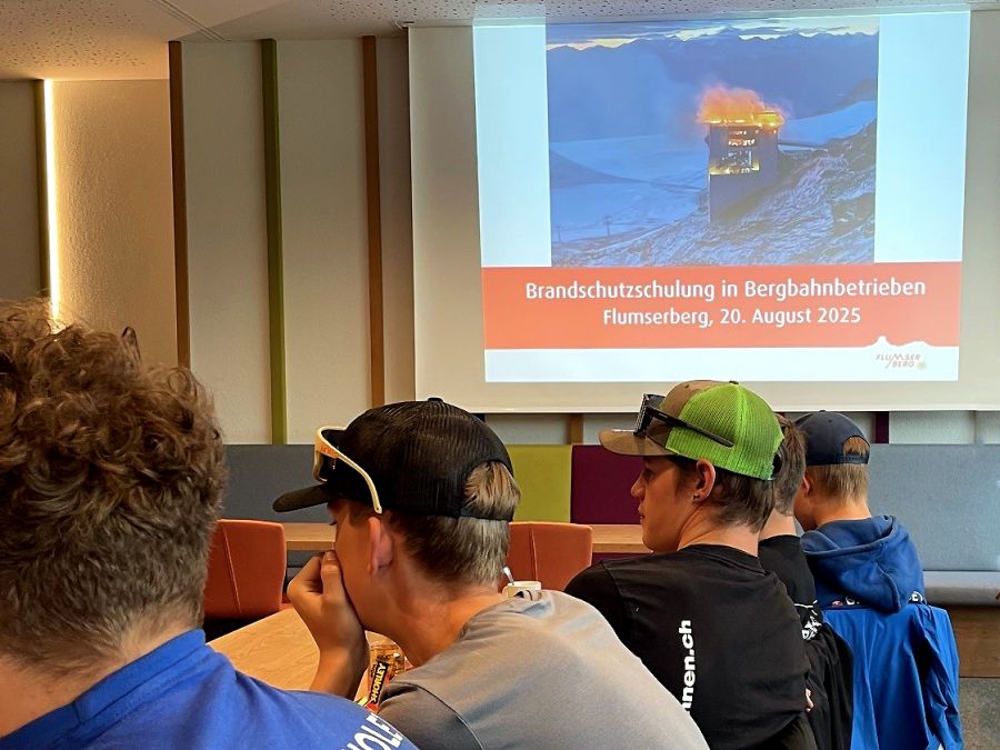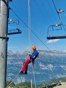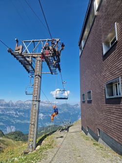 Ostschweizer Seilbahnen: Schulung SeilbahnlehrenIm Rahmen des OSVS Lehrverbund Seilbahnlehren nahmen 10 Lernende des 1. und 3. Lehrjahres aus unterschiedlichen Unternehmen am 19. und 20. August 2025 an Schulungen teil. Auf der Sesselbahn Arve / Flumserberg wurden am 1. Tag unter fachkundiger Leitung von Erich Holdener, Immoos GmbH, sicherheitsrelevante Abläufe trainiert und der Umgang mit der persönlichen Schutzausrüstung PSAgA vertieft. Am 2. Schulungstag erhielten die Teilnehmenden von Vertretern der Feuerwehr Flums Grossberg praxisnah wertvolle Inputs zu Brandschutz, Arbeitsschutz und Gesundheitsschutz. Die zweitägige Schulung leistet damit einen wichtigen Beitrag zur Gewährleistung eines sicheren und professionellen Arbeitsumfeldes. Herzlichen Dank an die Kursleitung und allen Lernenden für den grossen Einsatz |