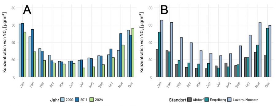 Luftmessungen Engelberg: Schadstoffbelastung durch Wintertourismus ist weniger hoch als vermutetEngelberg zieht in der Wintersaison rund eine halbe Millionen Besucherinnen und Besucher an. Ein neuer Bericht zeigt, dass die durch diesen Mehrverkehr verursachten Luftschadstoffe die Grenzwerte nicht überschreiten. Im Fall von Stickoxiden ist die Belastung aber höher als im schweizweiten Vergleich. Bericht von Umwelt Zentralschweiz Die Bergbahnen Engelberg-Trübsee-Titlis betreiben eines der grössten Skigebiete in der Region. Zusätzlich generieren auch die Brunni-Bergbahnen wesentliche Besucherströme. Pro Wintersaison zieht die Destination rund eine halbe Million Menschen an, wovon die meisten Tagesgäste sind und mit dem Privatfahrzeug anreisen. Um eine mögliche gesundheitliche Belastung durch Luftschadstoffe für die lokale Bevölkerung zu prüfen, fanden in Engelberg Immissionsmessungen statt. Die Messungen fanden im Jahr 2024 im Auftrag von Umwelt Zentralschweiz statt. Durchgeführt wurden sie von der inNET Monitoring AG, welche die Messergebnisse nun im «Immissionsbericht Engelberg» publiziert. Ein wichtiger Grund für die Untersuchungen in Engelberg ist die Annahme, dass Kaltstart-Emissionen insbesondere in der Wintersaison einen bedeutenden Einfluss auf die Immissionsbelastung haben. Kaltstart-Emissionen entstehen, wenn die Abgaskatalysatoren von Verbrennungsfahrzeugen in den ersten Fahrminuten ihre Betriebstemperatur noch nicht erreicht haben und somit relevante Luftschadstoffe nicht eliminiert werden. Da die Wintersportgäste Engelberg abends in der Regel nach fünf Minuten Fahrzeit verlassen, verbliebe der Grossteil dieser Schadstoffe somit im Dorfgebiet. Hinzu kommt, dass im Winter oft Inversionslagen vorkommen und die Schadstoffe sich damit in den unteren Luftschichten ansammeln. Ergebnisse: Feinstaub und Stickoxide liegen unter Grenzwerten Im Bericht wurden erstens die Immissionsmessungen aus dem Jahr 2024 am Standort Engelberg analysiert und mit den bestehenden Messergebnissen von 2009 und 2011 verglichen. Zweitens wurden sie mit den zwei weiteren Standorten Altdorf und Luzern Moosstrasse verglichen. Fazit: Die Luftschadstoffe überschreiten die Grenzwerte der Luftreinhalte-Verordnung (LRV) erfreulicherweise nicht. Die Ergebnisse sind wie folgt:
