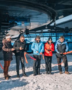 Mehr Komfort und Effizienz für Gäste und Mitarbeitende Als eine der ersten Achter-Sesselbahnen in der Schweiz bietet die neue Anlage den Gästen höchsten Komfort und sorgt für eine reibungslosere Abwicklung im täglichen Betrieb. Der Einstieg erfolgt neu in Fahrtrichtung, was den Gästefluss verbessert und das Einsteigen deutlich komfortabler macht. Die Umgestaltung des Einstiegsbereichs mit einer grosszügigeren Wartezone bringt Vorteile für Gäste und Mitarbeitende gleichermassen. Das Personal profitiert von einer verbesserten Sicht auf den Einstiegsbereich, während die klarere Abgrenzung zur Piste die Sicherheit im Anstehbereich erhöht. Unterstützt wird der Betrieb durch die Leitcontrol-Steuerung, die durch automatisierte Abläufe und eine intuitive Benutzeroberfläche den Arbeitsalltag der Mitarbeitenden erleichtert. Technik, Design und Fahrkomfort auf höchstem Niveau Die Bahn überzeugt nicht nur technisch, sondern auch optisch. Das moderne Stationsdesign des Ferrari-Designers Pininfarina verleiht der Anlage eine elegante und zeitgemässe Erscheinung. Durch 75 Sessel, mit je acht komfortablen Sitzplätzen und einer maximalen Fahrgeschwindigkeit von 6 Metern pro Sekunde erreicht die Bahn eine Förderleistung von rund 3'400 Personen pro Stunde. Die Premium-Sessel von Leitner sind mit bequemen Polstern und blauen Wetterschutzhauben ausgestattet, die bei jedem Wetter für ein angenehmes Fahrerlebnis sorgen. Insgesamt investierten die Zermatt Bergbahnen CHF 25 Millionen in den Neubau der Anlage. Fabian Imboden, Bereichsleiter Technik Nord, erklärt: «Neben dem Riffelberg-Express spielt die Sesselbahn eine zentrale Rolle für den Gebietswechsel zwischen Süd, Mitte und Nord. Die Anlage stellt eine bedeutende Bereicherung für das Skigebiet dar, da sie als zentrales Verbindungsstück zwischen den Gebieten fungiert. Im Gebiet «Mitte» ist sie die einzige Beschäftigungsanlage und erschliesst vier abwechslungsreiche Pisten, die den Gästen ein vielfältiges Fahrerlebnis bieten.» Soziale Verantwortung wahrgenommen Auf der Garagierung der Bergstation entstand zusätzlich ein Neubau mit Büroräumlichkeiten, einem Lokal für den Rettungsdienst sowie sanitären Einrichtungen. «Unser Team des Pistenrettungsdiensts Gornergrat kann in den neuen, modernen Räumlichkeiten noch effizienter arbeiten. Der Standort unseres neuen Rettungs-Lokals ist für Einsätze ideal gelegen», ergänzt Daniel Imboden, Leiter Pistenrettungsdienst Nord. Nachhaltigkeit und modernste Technik als Leitprinzip Im Bereich Nachhaltigkeit und Innovation setzen die Zermatt Bergbahnen auf die neuen Standards. Der Directdrive-Antrieb sorgt für einen nahezu geräuschlosen Betrieb bei minimalem Wartungsaufwand. Im Vergleich zu herkömmlichen Antrieben kann vollständig auf Getriebeöl verzichtet werden. Zusätzlich wurden in den Stationsverglasungen der beiden Stationen Solarpaneele installiert, die zur Eigenstromversorgung beitragen. Durch die Wiederverwendung von mehr als der Hälfte der bestehenden Stützenfundamenten konnte der Eingriff in die Natur erheblich reduziert werden. Diese Massnahmen senken nicht nur den Material- und Ressourcenverbrauch, sondern schonen auch die Umwelt. Mit der neuen Achter-Sesselbahn Gifthittli unterstreichen die Zermatt Bergbahnen ihr Engagement für Innovation, Nachhaltigkeit und höchsten Gästekomfort und setzt damit ein weiteres Zeichen für die Zukunft des alpinen Tourismus. Eröffnungsfeier unter dem Motto «Geschenk» «Es ist ein Geschenk, diese topmoderne Anlage dem Betrieb übergeben zu dürfen.» sagt Martin Hug, CEO der Zermatt Bergbahnen anlässlich der Eröffnungszeremonie. Die Sesselbahn «Gifthittli» verdankt ihren Namen der britischen Bezeichnung «Gifthouse» für die frühere Zahlstelle und den kleinen Geschenkladen jener Gäste, die sich einst auf den Gornergrat transportieren liessen. Das Motto begleitete die feierliche Eröffnung und Segnung der Bahn in der Vor-Weihnachtzeit, welche von Cloé Maria Salzgeber moderiert wurde. |