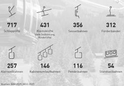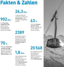 - Die Seilbahnbranche generierte in der Periode 2023/24 respektive 2024 einen Gesamtumsatz von 1,8 Milliarden Schweizer Franken.