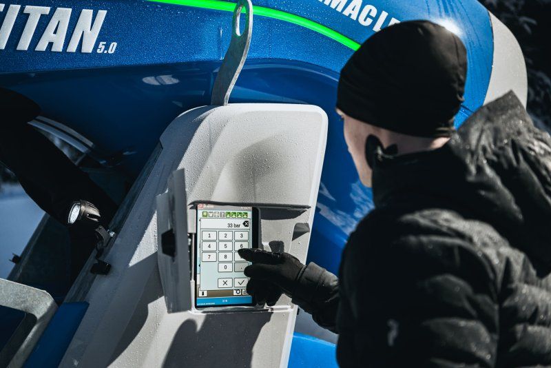 DEMACLENKO TITAN 5.0 - PUSHING THE LIMITS OF SNOWMAKINGMit dem neuen Titan 5.0 bestätigt DEMACLENKO erneut seine Rolle als unangefochtener Innovationsführer der Beschneiungsbranche. Die Maschine bleibt ihrem bewährten Design treu und überzeugt mit zahlreichen technologischen Neuerungen. Diese wirken sich direkt auf die Schlüsselfaktoren für eine effiziente Beschneiung aus: Im direkten Vergleich liefert der Titan 5.0 nämlich noch mehr Schnee mit noch besserer Qualität – vor allem bei Grenztemperaturen – und verbraucht dabei deutlich weniger Energie. Marktführend bei Grenztemperaturen dank neuem Düsenkranz Der Düsenkranz des Titan 5.0 wurde komplett überarbeitet und auf eine noch homogenere Schneeverteilung optimiert. Dies führt zu einer noch besseren Schneequalität und zu einer maximierten Schneeproduktion, vor allem bei Grenztemperaturen. Diese Optimierungen machen den Titan 5.0 zum absoluten Gamechanger für Skigebiete, die einen leistungsstarken und gleichzeitig effizienten Schneeerzeuger in allen Temperaturbereichen benötigen. Dank seiner technologischen Überlegenheit lassen sich mit dem Titan 5.0 nämlich auch weniger ideale Schneifenster bestmöglich ausnutzen. Für viele Skigebiete ist dies insbesondere für die Grundbeschneiung vor der Saison entscheidend, da auch bei wechselhaften klimatischen Bedingungen maximale Produktionssicherheit gewährleistet sein muss. Weiterentwickeltes Luftkühlsystem für noch mehr Effizienz In den neuen Düsenring des Titan 5.0 wurde ein innovativer Wärmetauscher integriert. Auf diese Weise wird der Düsenring beheizt und gleichzeitig wechselwirkend die Druckluft gekühlt. Diese Neuerung markiert einen weiteren Effizienzsprung: Das ausgereifte Luftkühlsystem der Maschine – dessen Grundstein DEMACLENKO bereits 2011 mit der serienmäßigen Nachkühlung der Druckluft über den Wasserfilter legte – wurde damit erfolgreich zu einem wirksamen Kreislauf weiterentwickelt. So wird eine besonders niedrige Lufttemperatur sichergestellt, was die Gesamtperformance der Maschine deutlich optimiert, besonders bei Grenztemperaturen. Hocheffiziente Kompressortechnologie Eine weitere zentrale Neuerung des Titan 5.0 ist die Integration einer völlig neuen Kompressortechnologie. Der Scroll-Kompressor überzeugt durch seine zahlreichen Vorteile: Er arbeitet extrem leise, nahezu vibrationsfrei und liefert zuverlässige Spitzenleistung. Gleichzeitig ist er kompakt, wartungsarm und garantiert 100 % ölfreie Druckluft – ideal für den anspruchsvollen Einsatz in der Schneeerzeugung. Durch die hohe Effizienz des neuen Kompressors verbessert sich zudem die Energiebilanz der Maschine spürbar, da er insgesamt weniger Strom als sein Vorgängermodell benötigt. Auch im direkten Marktvergleich setzt DEMACLENKO mit dieser Technologie neue Maßstäbe bei Energieverbrauch und Wirkungsgrad. Optimierte Benutzeroberflächen & Elektronik Beim Titan 5.0 kommt ein neues, intuitives 10"-Touch-Farbdisplay zum Einsatz, das höchste Benutzerfreundlichkeit garantiert. Wie gewohnt lässt es sich auch mit Handschuhen problemlos bedienen und zeigt alle relevanten Daten auf einen Blick: Wassertemperatur, Druck, Durchsatz, Schneequalität, Energieverbrauch, Lufttemperatur und -feuchtigkeit sowie statistische Kennzahlen. Auch der Schaltschrank wurde komplett überarbeitet und auf den neuesten Stand der Technik für Hochleistungselektronik gebracht. Neu integriert wurde zudem ein Energiemesser, der die Leistungsüberwachung in Echtzeit ermöglicht. Für den einfachen Transport entwickelt Seit jeher steht bei DEMACLENKO auch das einfache und benutzerfreundliche Handling der Maschinen im Mittelpunkt. Deshalb überzeugt auch der Titan 5.0 mit seinem unschlagbar niedrigen Gewicht – ein Eigenschaft, durch die sich alle Propellermaschinen von DEMACLENKO am Markt abheben. Dank der bewährten Andockrichtungen, die direkt im Unteraufbau der Maschine integriert sind, kann der Schneeerzeuger sehr nah und sicher am Schild des Pistenfahrzeugs geführt werden. Das beweist sich vor allem in sehr steilem Gelände als entscheidender Vorteil. Das vergleichsweise geringe Gericht ermöglicht auch einen problemlosen Transport mittels Helikopter, auch in sehr großen Flughöhen. Konsequent weiterentwickelt auf bewährter Basis Mehr denn je ist es DEMACLENKO mit dem neuen Titan 5.0 gelungen, konsequente Innovation mit erprobter Technik zu verschmelzen und echten Kundennutzen zu schaffen. Mit dem Titan 5.0 erhalten Skigebiete einen Schneeerzeuger, der höchste Effizienz bietet und eine maximale Nutzung jedes Schneifensters ermöglicht. Er verbindet technologische Spitzenleistung mit praxisnaher Funktionalität und ist der neue Leader am Markt, wenn es um effiziente und kompromisslose Beschneiung in allen Temperaturbereichen geht. Hier geht’s zur Produktseite des neuen TITAN 5.0 >>>> |