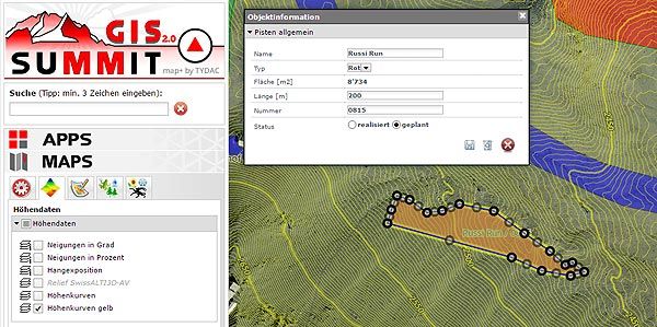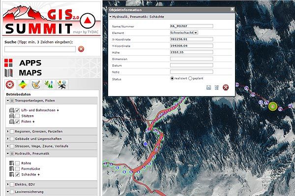 Mazzetta & Menegon Partner AG: Einfache GIS-Lösung für BergbahnenSummit GIS", eine WebGIS Lösung für die Betreiber von Bergbahnen. Der Betrieb eines Skigebiets kostet Geld. Das hat viel mit Infrastruktur zu tun - und diese sollte daher effizient verwaltet werden: - Transportanlagen, Pisten, Wege, Zäune usw.