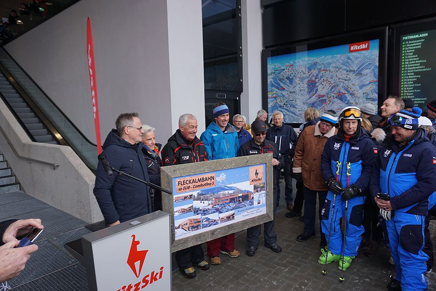 Kitzbühel: Die neue „Fleck“Fleckalmbahn NEU und Sportshop nach Segnung feierlich eröffnet Nach weniger als 8-monatiger Bauzeit konnten, vor dem Zeitplan und genau im Kostenrahmen, am 14. Dezember Aufsichtsratsvorsitzender Dr. Klaus Winkler und Vorstandsvorsitzender Dr. Josef Burger mehr als 300 geladene Gäste zur feierlichen Eröffnung und Segnung der Fleckalmbahn und des Sportshops begrüßen. Zum Festakt fand sich das Who-is-Who der internationalen Seilbahn- und Wintersport-Industrie ein: Neben den vollzählig versammelten Mitgliedern des Managementboards der Leitner AG gaben sich die Eigentümer des Seilherstellers Teufelberger, des Skibekleidungsherstellers Schöffel, ebenso wie der Vorstandsprecher der Kässbohrer AG, die Geschäftsführer der Demaclenko und Prinoth GmbH ein Stelldichein. Die wichtigsten Vertreter der leistungsstarken bauausführenden Firmen, ebenso wie die namhaften Vertreter der führenden Finanzdienstleister, allen voran der Vorstandsdirektor der Österreichischen Kontrollbank AG, fanden sich zur Eröffnung ein. Die wichtigsten Repräsentanten der touristischen Partnerorganisationen in Kitzbühel und Kirchberg waren ebenso anwesend wie der Geschäftsführer der Tirol Werbung. Die Internationalität wurde auch dadurch geprägt, dass der Senior Vice President der Flughafen München GmbH, ebenso wie ein namhafter Vertreter des europaweit größten Kundenbindungsprogrammes Miles & More anwesend war. Eine besondere Ehre für die Bergbahn AG Kitzbühel und Auszeichnung für die feierliche Eröffnung stellte das Kommen von Frau Hildegard Wortmann, weltweiter Vertriebsvorstand der Audi AG, dar. Mit der 10EUB Fleckalmbahn NEU, einer Anlage aus dem Hause Leitner, hat die Bergbahn AG Kitzbühel ein Benchmark für Seilbahnanlagen gesetzt, das nicht nur auf regionaler oder nationaler, sondern auch auf internationaler Ebene seinesgleichen sucht. Bei der Fleckalmbahn NEU werden gänzlich neue Dimensionen bei Nachhaltigkeit, bei technischer Innovation und bei Fahrgastkomfort eröffnet. Das Kommitment der Bergbahn AG Kitzbühel zur effizienten Nachhaltigkeit kommt durch das energiesparende Direktantriebssystem, das ressourcenschonendende, geschwindigkeitsgetriebene Kapazitätsmanagement, der um ein Viertel reduzierten Anzahl der Stützen und der um die Hälfte verringerten Anzahl an Fahrgastkabinen bei gleicher Beförderungsleistung, der Verwendung eines kompaktierten, geglätteten Seils und größeren Rollendurchmesser klar zum Ausdruck. All diese Maßnahmen führen zu einer Energieersparnis von jährlich 75.000 kWh und dokumentieren eindrucksvoll den technologischen Fortschritt und die tatsächlich messbare Nachhaltigkeit. Die neue 10er Kabine im eleganten Pininfarina Design, bietet größten, derzeit am Markt verfügbaren Fahrgastkomfort. Die Kabinendimensionen bei Tiefe, Breite, Höhe und Türbreite übertreffen nicht nur die Dimensionen der alten Kabine deutlich, sondern haben auch die Nase gegenüber vergleichbaren Produkten am Markt vorn. Die ergonomisch geformten Einzelsitze mit Volllederbezug sind, wie bei KitzSki bereits standardmäßig mit Sitzheizung ausgestattet und als Weltneuheit auch im Lendenbereich mit Heizelementen versehen. Vorstandsvorsitzender Dr. Josef Burger streicht erfreut heraus: „Ich bin unbeschreiblich stolz auf unser Team, das in nur 235 Tagen die Errichtung der Tal-, Bergstation und Strecke, einer der längsten Einseilumlaufbahn in den Alpen mit einer Länge von 4,1 km, pünktlich und kostentreu fertiggestellt hat. Die gesamte Planung der Anlage, mit Ausnahme der Seilbahntechnik, wurde von unserem Technik Team unter der Leitung von Florian Wörgetter im Hause durchgeführt. Dies spiegelt die außerordentliche Kompetenz der Bergbahn AG Kitzbühel wider. Die Inbetriebnahme der Fleckalmbahn ist für mich der erfüllendste Moment meiner Tätigkeit bei der Bergbahn AG Kitzbühel und einer der freudigsten in meiner 43-jährigen beruflichen Laufbahn.“ Aufsichtsratsvorsitzender Bürgermeister Dr. Klaus Winkler unterstreicht die großartig Leistung bei der Errichtung der Fleckalmbahn NEU: „Die Fleckalmbahn NEU stellt ein Generationenprojekt dar, das einmal mehr die hervorragende Arbeit, die bei der Bergbahn AG Kitzbühel geleistet wird, bestätigt. Die neu geschaffene Infrastruktur steuert einen wichtigen Beitrag zum touristischen Erfolg bei, der viele Arbeitsplätze sichert und zusätzliche Wertschöpfung in die Region bringt. Die 10-jährige, umfassende Qualitätsoffensive der Bergbahn AG Kitzbühel, in der 110 Einzelprojekte mit einem Investitionsvolumen von € 225,0 Mio. umgesetzt wurden, erreicht mit der Fleckalmbahn NEU, der historisch größten Einzelinvestition iHv € 27,5 Mio., ihren Höhepunkt.“