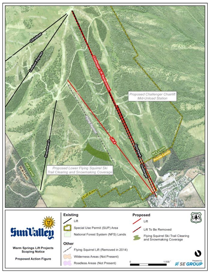 Sun Valley Plans New Warm Springs LiftsThe Sun Valley Company and US Forest Service are soliciting public comments on an ambitious plan to redesign lift service on the Warm Springs side of Bald Mountain. First, a new Challenger six place chairlift is proposed to replace the aging Challenger and Greyhawk detachable quads. Challenger is no ordinary chairlift – it services more vertical than any other chair in North America – 3,142 vertical feet in nine minutes. Greyhawk runs parallel to Challenger for its first 1,488 feet of vertical. Both Lift Engineering-turned-Doppelmayr detachables date back to 1988. The wider gauge Challenger would feature a mid-unloading station at the top of the Upper Greyhawk and move 2,400 skiers per hour. The project also includes a new Flying Squirrel/Lift A detachable quad. The original Flying Squirrel opened in 1972 and operated until February 1st, 2014, when it was destroyed by a drive terminal fire. The lift was removed the following offseason but never replaced. The A quad would follow a modified alignment, loading at the base of Warm Springs and terminating near the top of Picabo’s Street and Flying Squirrel. It would move up to 1,800 skiers per hour and provide key redundancy out of the base area. The Flying Squirrel run would be extended downhill to the bottom of Warm Springs and the new lift’s load point. New snowmaking would also be included. If approved, both new lifts would be constructed in 2023 and open for the 2023-24 ski season. A manufacturer has not been announced. Sun Valley currently operates an all Doppelmayr fleet but the resort’s parent company recently partnered with Leitner-Poma for a new six passenger lift at Snowbasin. http://www.liftblog.com |