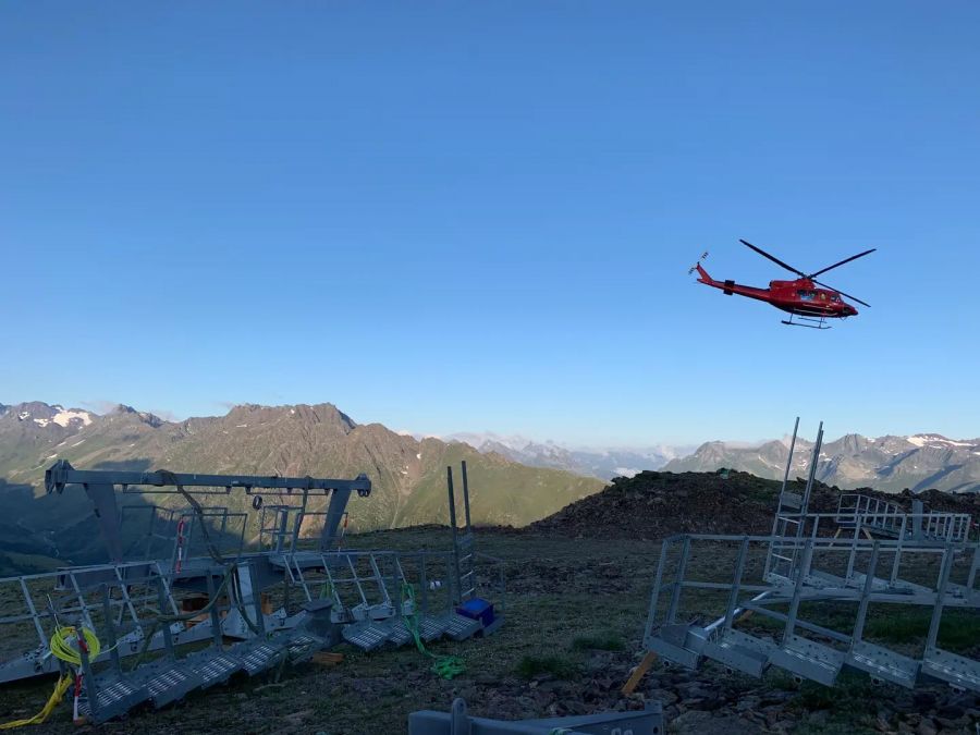 Ischgl: Stützenmontage mittels Schwerlasthelikopter